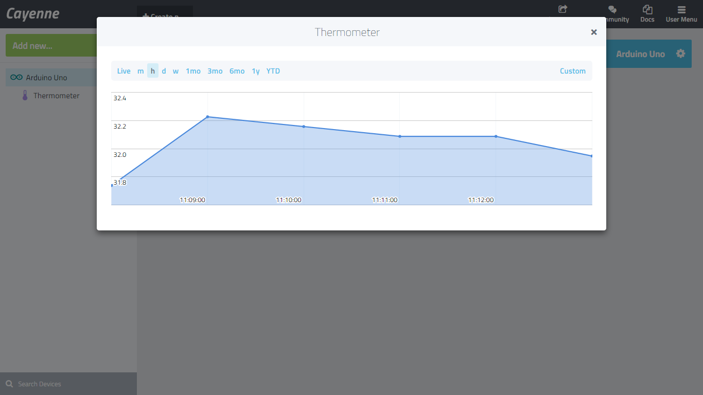 A simple temperature sensor using one LM35 Precision Temperature Sensor and Arduino. The circuit will send information about the temperature that you can use on your Cayenne Web App.